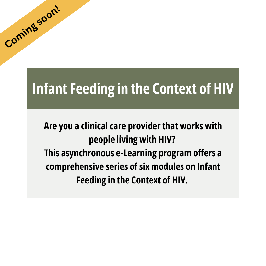 Are you a clinical care provider that works with people living with HIV? This asynchronous e-Learning program offers a comprehensive series of six modules on Infant Feeding in the Context of HIV.